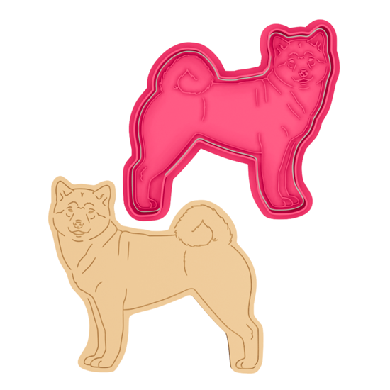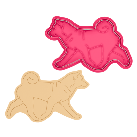 Foremka do wykrawania ciasta i stempel do odciskania wzoru w kształcie psa rasy shiba. Dostępne są cztery wzory.