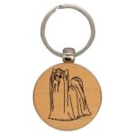 Drewniany breloczek z metalowym kółkiem do kluczy. Grawerowany laserowo.